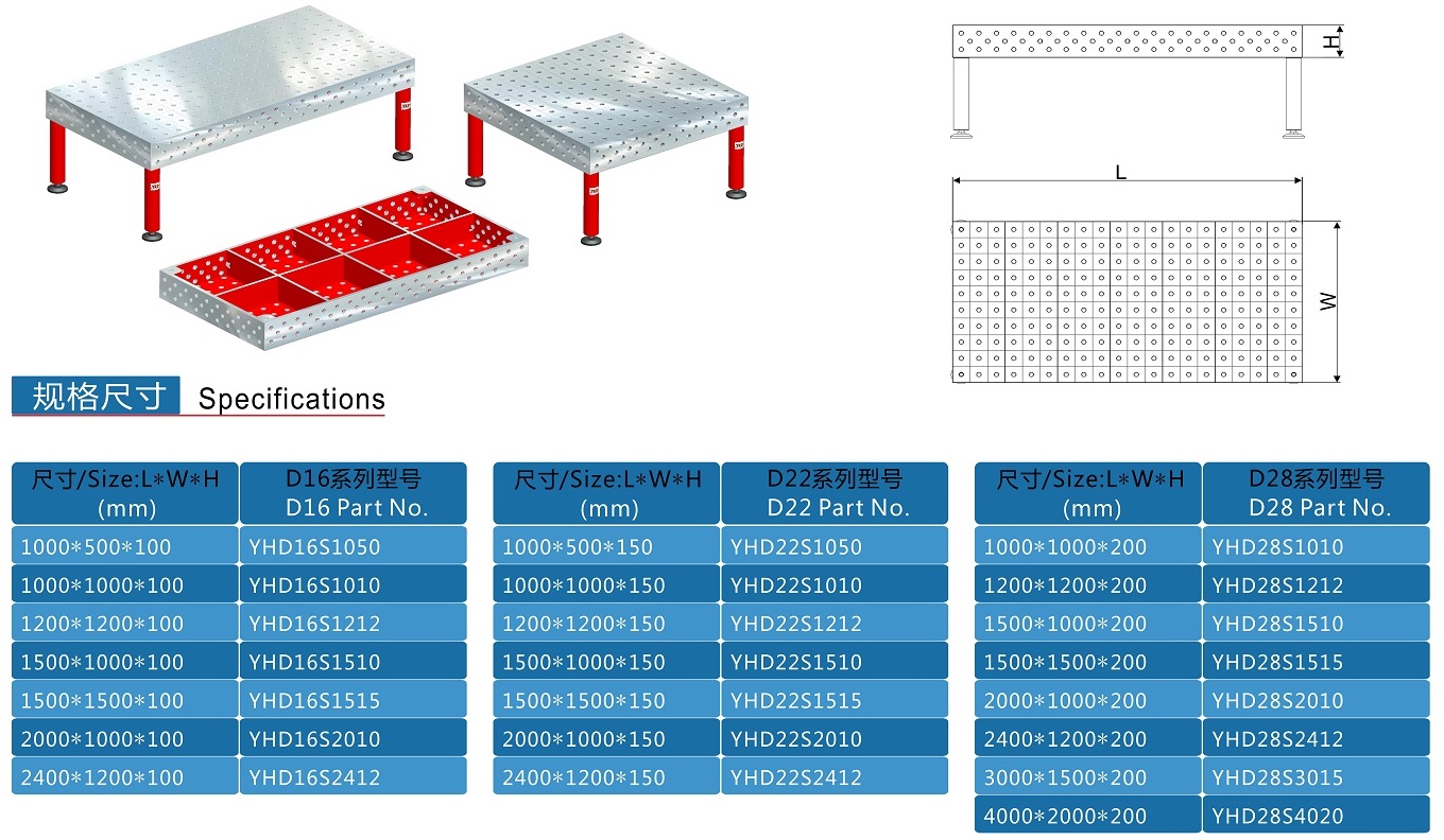 ? 大型鋼結(jié)構(gòu)及重型機(jī)械行業(yè)多采用D28系列平臺(tái),工件大小變化較大的情況建議采用D22系列;